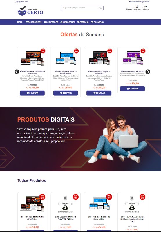 Site Loja produtos digitais 100% responsivo em PHP MySQL com Painel Administrador, fácil edição pelo painel, feito em PHP 5.6 a 7.4 MySQL, utilizando os Framework Bootstrap v3.3.7 e Font Awesome 5.7.0 para agiliza maior performance de navegação.